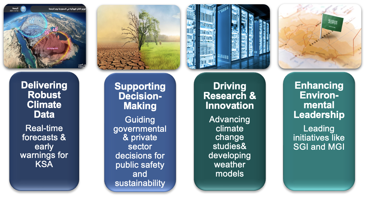 The Climate Change Center serves as the Kingdom’s national hub for climate science, integrating monitoring, forecasting, and research to strengthen resilience across water, energy, agriculture, and infrastructure sectors.